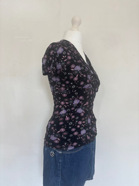 Black Floral Tie up Wrap Top
